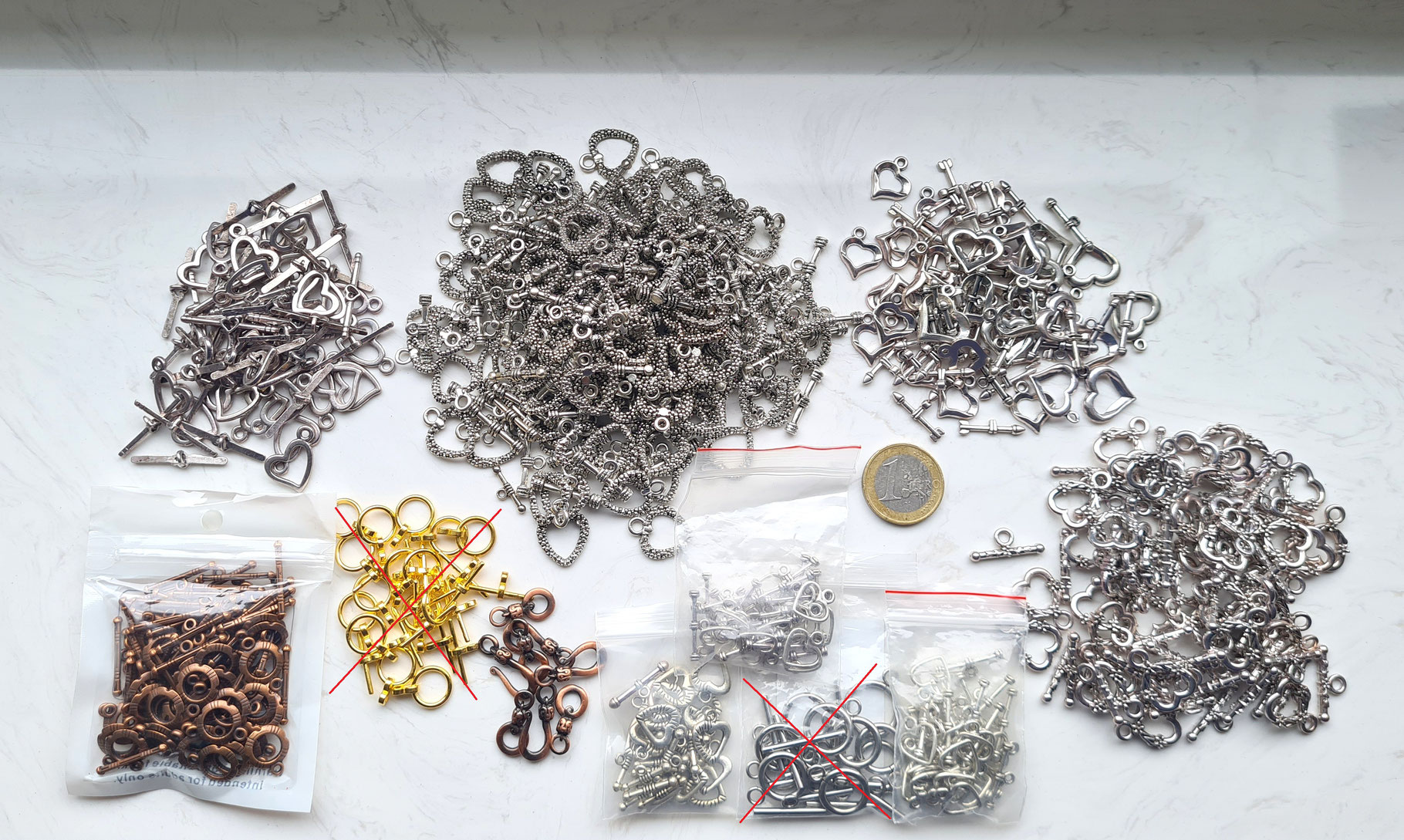 Gesamtgewicht ca. 500 g. Es handelt sich um Reste aus der Schmuckproduktion, alle unbenutzt.