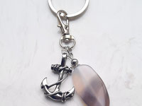 SALE! Länge ab Karabiner ca. 9 cm, mit Schlüsselring 12 cm. Anker 4,5 cm lang, massiv, aus Edelstahl. Achat ca. 4,5 cm, mit Edelstahlperle und Perlkappen aus silberfarbenem Metall.